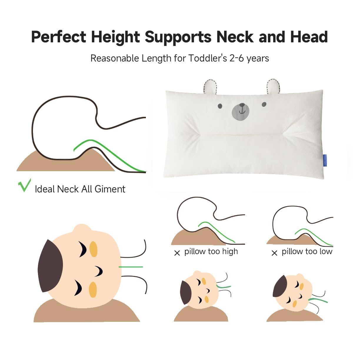 Cute Bear Toddler Pillow for Sweet Dreams | Soft Cotton | Sanity Saver for Moms